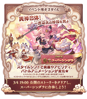 3月4日更新のストーリークリアでシンダラのスタイルシフト『スーパーシンダラ』が入手可能。